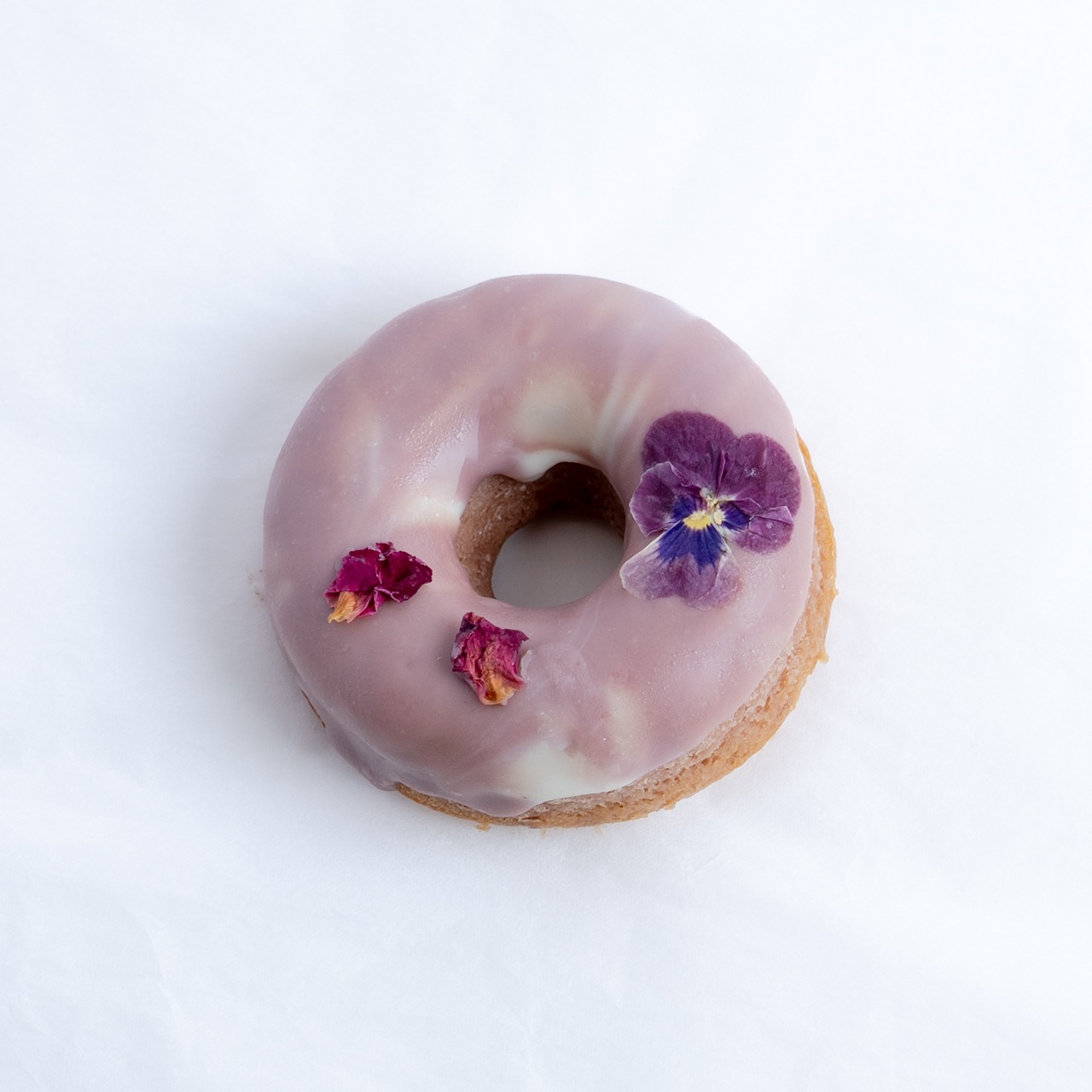米粉、アーモンドプードル、フリーズドライ苺、転化糖、ラズベリーパウダー、紫芋パウダー、エディブルフラワー