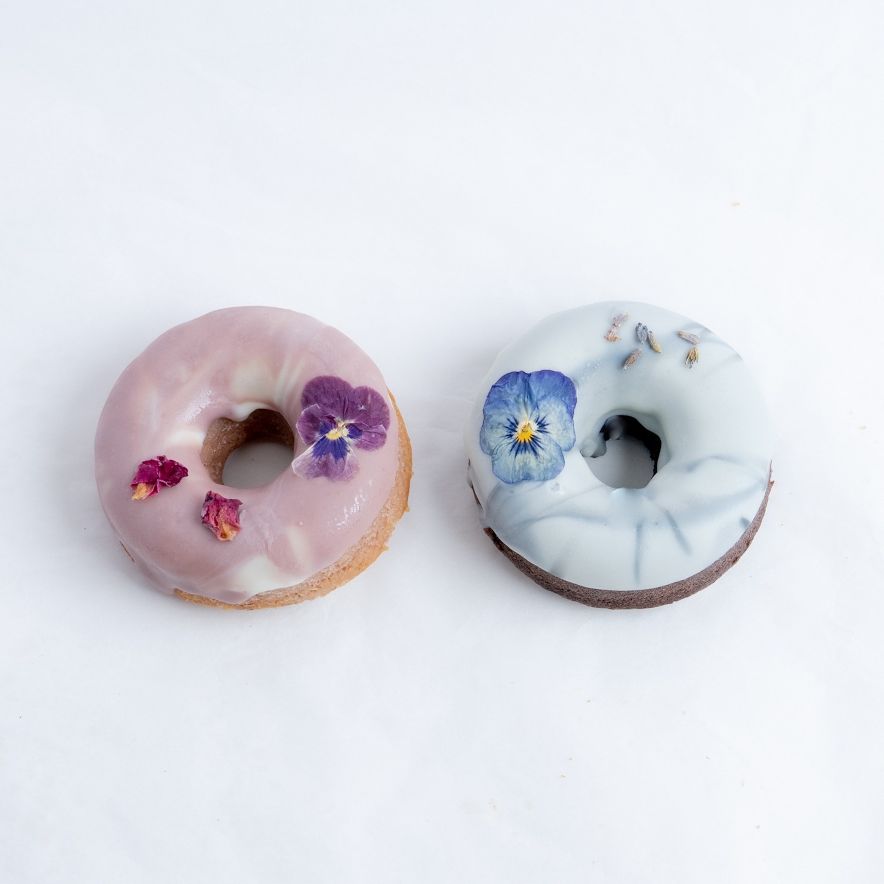 米粉、アーモンドプードル、フリーズドライ苺、転化糖、ラズベリーパウダー、紫芋パウダー、エディブルフラワー