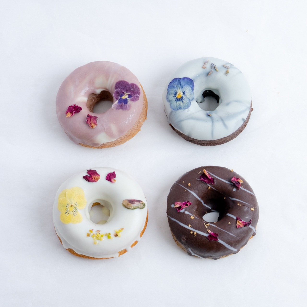 米粉、アーモンドプードル、フリーズドライ苺、転化糖、ラズベリーパウダー、紫芋パウダー、エディブルフラワー