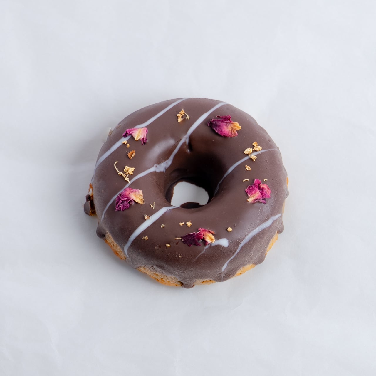 米粉、アーモンドプードル、チョコチップ、ココアパウダー、転化糖、竹炭パウダー、エディブルフラワー