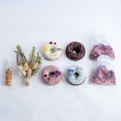 米粉、アーモンドプードル、フリーズドライ苺、転化糖、ラズベリーパウダー、紫芋パウダー、エディブルフラワー