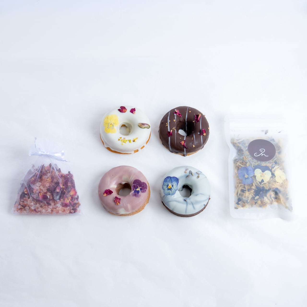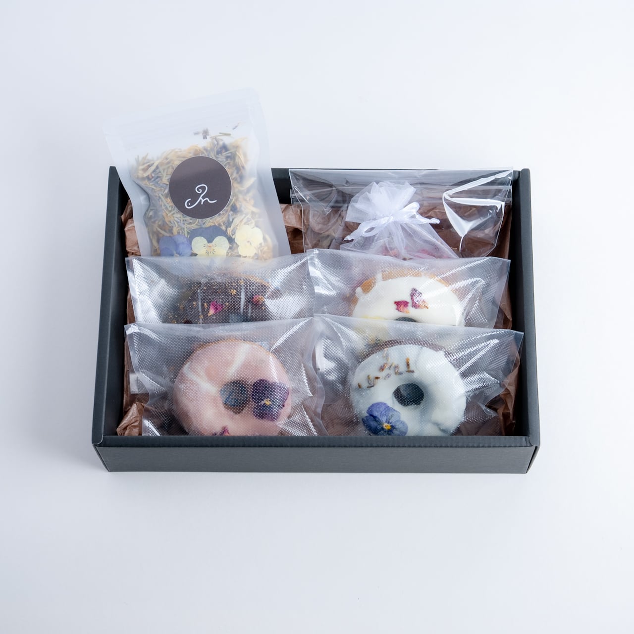 リースフィナンシェ全4種に、gmgmオリジナルハーブティーとローズバスソルトを合わせたセットです。