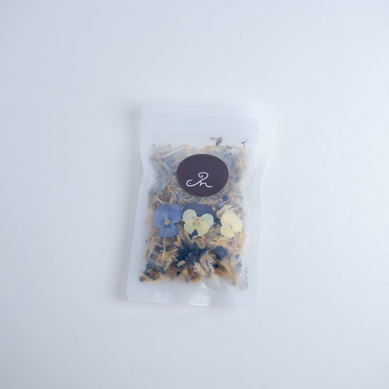 米粉、アーモンドプードル、転化糖、アールグレイ茶葉、エディブルフラワー